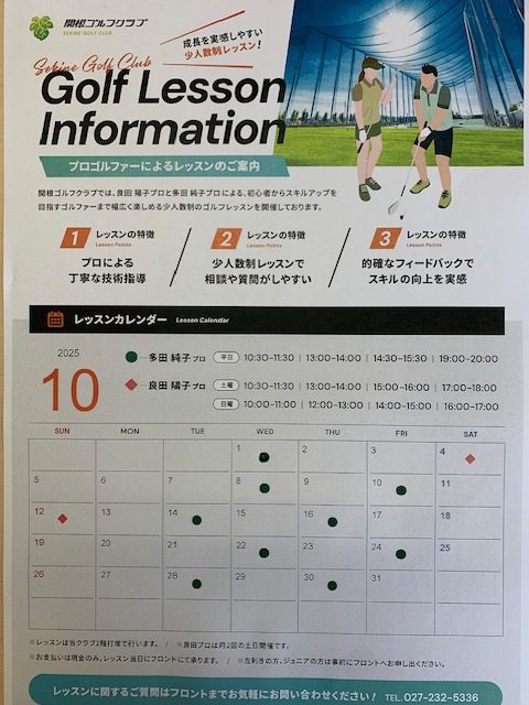 10月の良田プロ・多田プロのレッスンのご案内です。